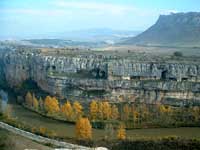 | El valle de Recuevas es lugar de especial interés para los amantes de la escalada. Se encuentra a 5 km. de Aguilar de Campoo en dirección a Gama (hay un cartel indicando la situación). Le cruza el arroyo del mismo nombre junto al que ascendemos por una sinuosa senda entre monte bajo y avellanos hasta alcanzar unas formaciones rocosas donde podremos contemplar y practicar este deporte, apoyados, si queremos, por una escuela de escalada deportiva perfectamente dotada. El cañón de la Horadada se encuentra en el término