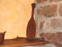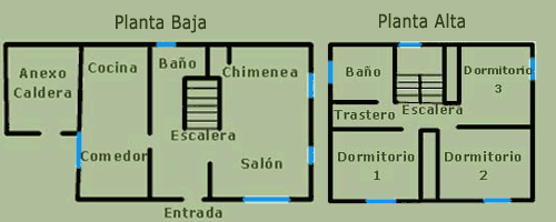 Esta casa rural de alquiler completo, de seis plazas, ha sido construida recientemente, respetando los elementos arquitectónicos que existían. La piedra y la madera de roble le dan ese carácter rústico que combina perfectamente con todas las comodidades modernas, como la calefacción de gasoil o el teléfono móvil que la propietaria pone a disposición de los clientes. La casa se divide en dos plantas. En la planta baja, tras cruzar la puerta principal, el recibidor da paso a la amplia sala de estar, totalmente equipada. En ella podemos disfrutar de una chimenea de convección de aire caliente aprovisionada de leña. Junto a la chimenea, en una repisa de piedra y madera nos encontramos con una minicadena musical y un conjunto de televisión y vídeo. Es de destacar la recuperación de un fuelle antiguo que luce como mesa de sala. Como en el resto de la casa, la decoración cuida los detalles con elementos tradicionales. La cocina-comedor respeta las formas tradicionales, en las que primaba el fogón, una encimera forrada de cerámica y canteada en madera. Está completamente equipada con lavadora, vitrocerámica, frigorífico y microondas. El comedor dispone de una mesa de madera de siete plazas y una alacena con todo el menaje necesario. Esta planta dispone de un baño completo. La escalera está decorada con un arambol de hierro forjado y nos conduce a la planta alta, donde llaman la atención sus altos techos artesonados combinando piedra y grandes vigas de roble. En esta planta encontramos tres dormitorios, uno con una cama de matrimonio y una cama supletoria en un curioso altillo; y los otros dos con habitaciones dobles de camas separadas. En ellos se puede apreciar una gran viga